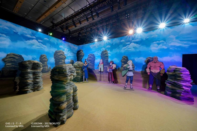熱血戰鬥場面原汁原味呈現在眼前!精心打造「觸地發亮的通靈陣」(快結印吧各位)、「妙木山蛤蟆老大」、「忍者五大國影們合力對抗宇智波斑」、「佐井大決超獸偽畫」等逼真的互動性沈浸展區,搭配煙霧、聲光效果,鐵粉們看到一定會跟妞編輯一樣瘋狂尖叫!