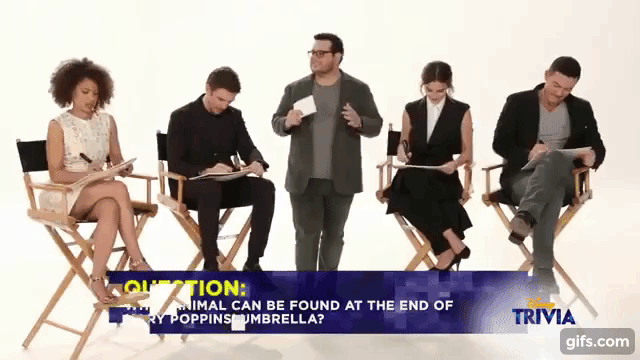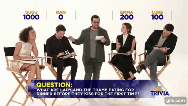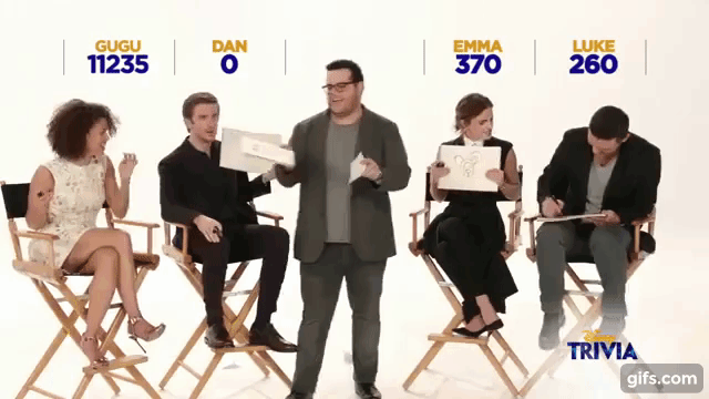 咱們的貝兒第一個答對!然後看她認真答題的樣子,有沒有種妙麗上身的感覺?旁邊飾演反派「加斯頓」的路克伊凡斯(Luke Evans),那「痞樣子」跟劇中的加斯頓一模一樣啊XD~