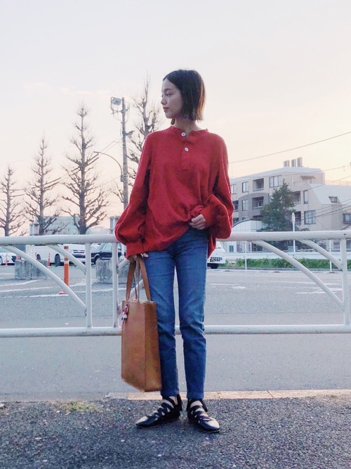 紅色單品很容易就是整體造型的重點,平常穿搭時不用太刻意,選用oversize紅色上衣簡單搭上一件直筒牛仔褲和尖頭鞋,就非常時髦有型!