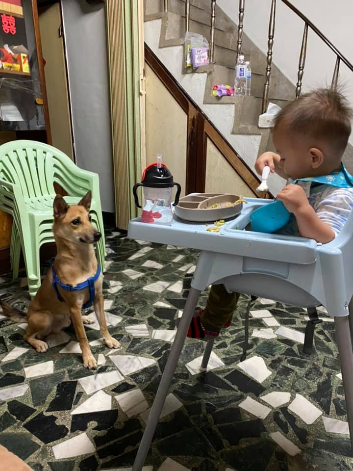 「狗兒子現在都坐在弟弟面前,等兒子什麼時候『不小心』丟食物給他!」