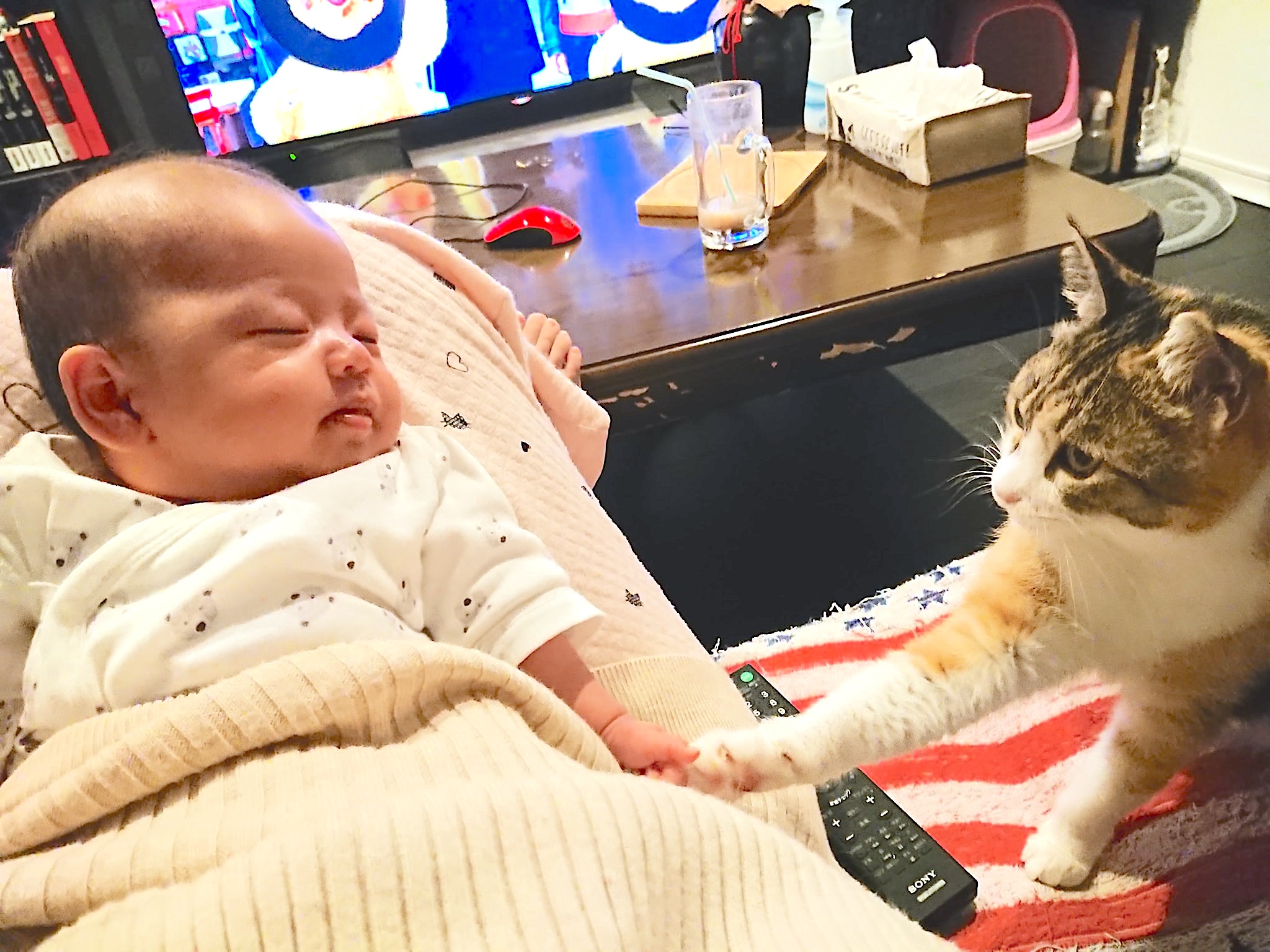 以為是輕柔的撫摸....沒有!其實嬰兒正在偷捏貓哥哥XDD