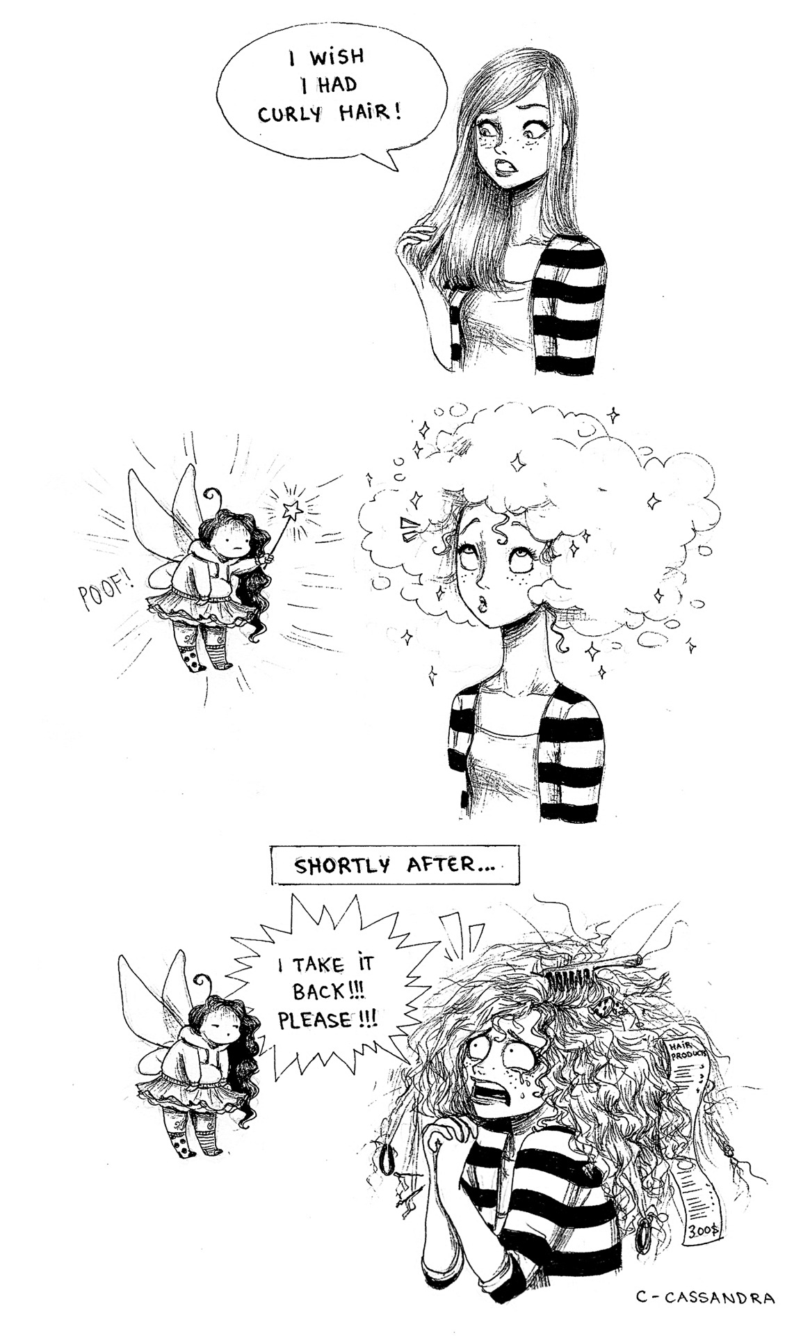 「仙子啊仙子~我想要一頭美麗的大捲髮。」