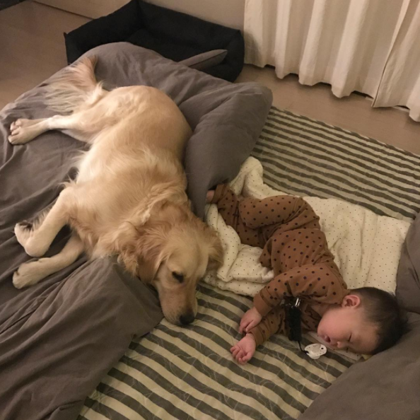 到底是兩個兒子還是兩隻狗?韓國弟弟Dado和黃金獵犬如影隨形的好感情