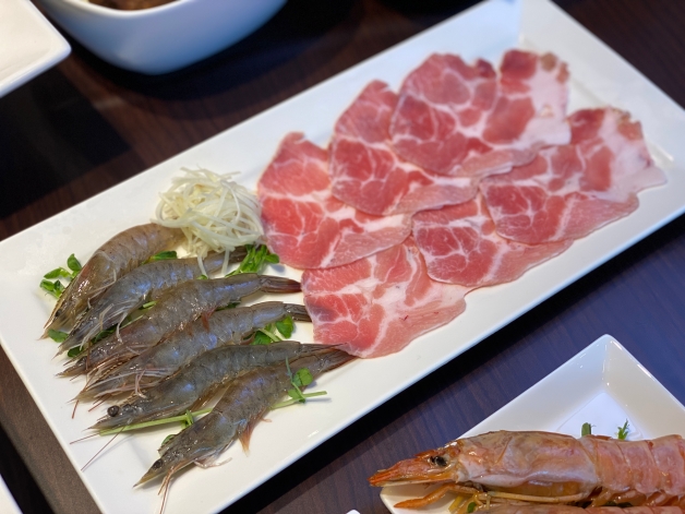 「超值1+1 」有七種肉品和海鮮可以選擇,分別為「活菌豬」、「中腹牛五花」、「精選雪花豬」、「低脂里肌牛(+10元)」、「鮮白蝦(L)」、「東石鮮蛤仔(L)」和「東港活力鯛(L)」,還可選擇加價39元~49元不等,肉就可以增量68%,是不是很可以,特別是口感Q嫩的「丹麥活菌豬」和油花分布均勻「美國中腹牛五花」必點!