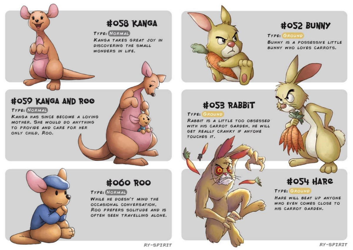 袋鼠母子內含洋蔥嗚嗚嗚,有沒有發現最後剩ROO一個人了?不知道媽媽怎麼了,粉絲們直呼好悲傷無法接受.....兔子則是從小兔變成兔子再變成野兔,越來越兇猛的概念XD