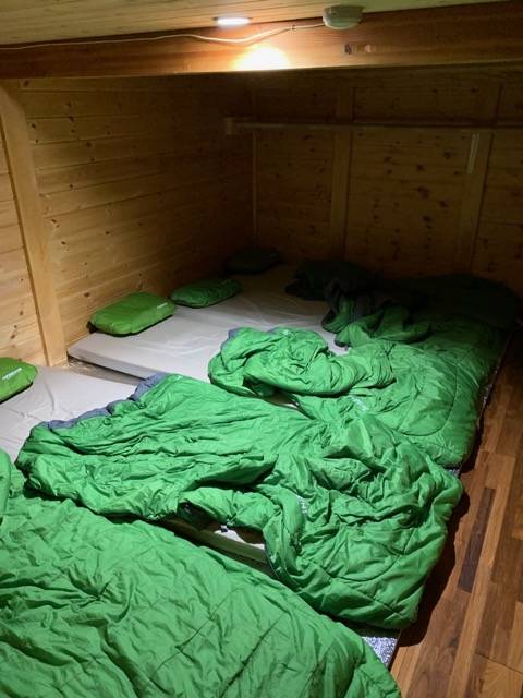 這次小編登山人數正好5個人,為了良好的睡眠品質(?),因此我們選擇了位於七合目的東洋館,並訂了個室。整體住下來的心得是,房間真的很高級,還有提供充電插頭和睡袋,但是晚上根本睡不著,雖然是個室但是完全不應該對山小屋的隔音抱有期待呀!