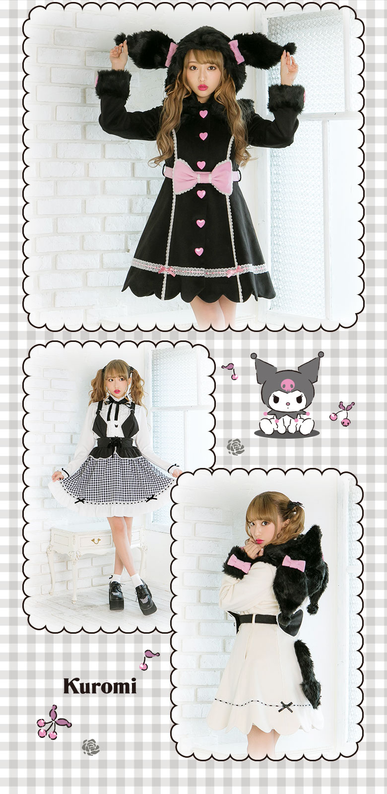 不知道是不是因為黑白配色的關係,酷洛米的洋裝穿起來好像女僕裝啊~肩帶的部分還是耳朵的形狀呢!大衣的背後則做了一條尾巴,小惡魔的感覺更是upup!