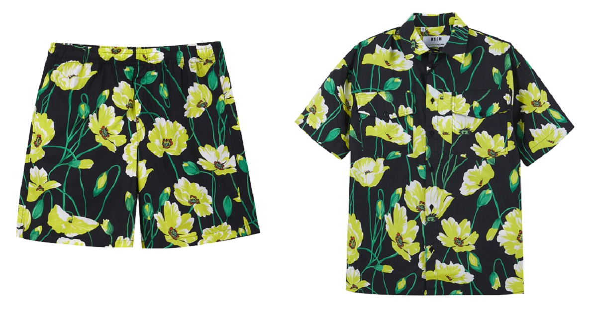 MSGM SS20 黃罌粟印花短袖襯衫 NT$17,300 / MSGM SS20 黃罌粟印花短褲 NT$11,800