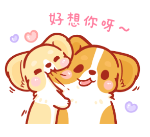 《柯基犬卡卡》很適合狗奴或家裡有養柯基犬的情侶,化身成最喜歡的柯基在聊天室裡互相示愛!整體風格相當Q萌療癒,像是這張咬著臉頰肉配上「好想你呀~」(設計對白)的貼圖,粉紅泡泡都要衝出螢幕了呢!