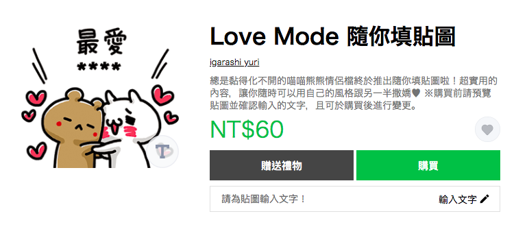 貼圖名稱:《Love Mode 隨你填貼圖》