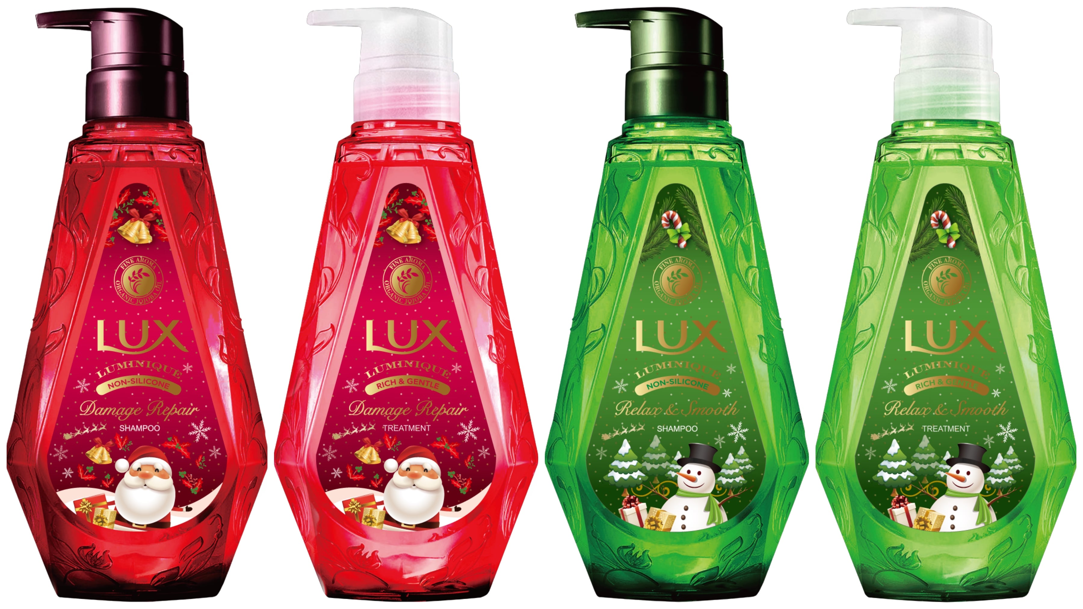 LUX在今年隆重推出限定「聖誕老人版 - LUX 璐咪可SPA精油修護洗護系列」以及「雪人版 - LUX璐咪可SPA精油舒活洗護系列」,分別擁有國際香氛專家訂製的頂級玫瑰花果香和尤加利木質香,還有香水的前中後味,讓洗後秀髮隨著時間改變散發出多層次的淡淡髮香,可愛瓶身光是拿在手上就讓人愛不釋手。