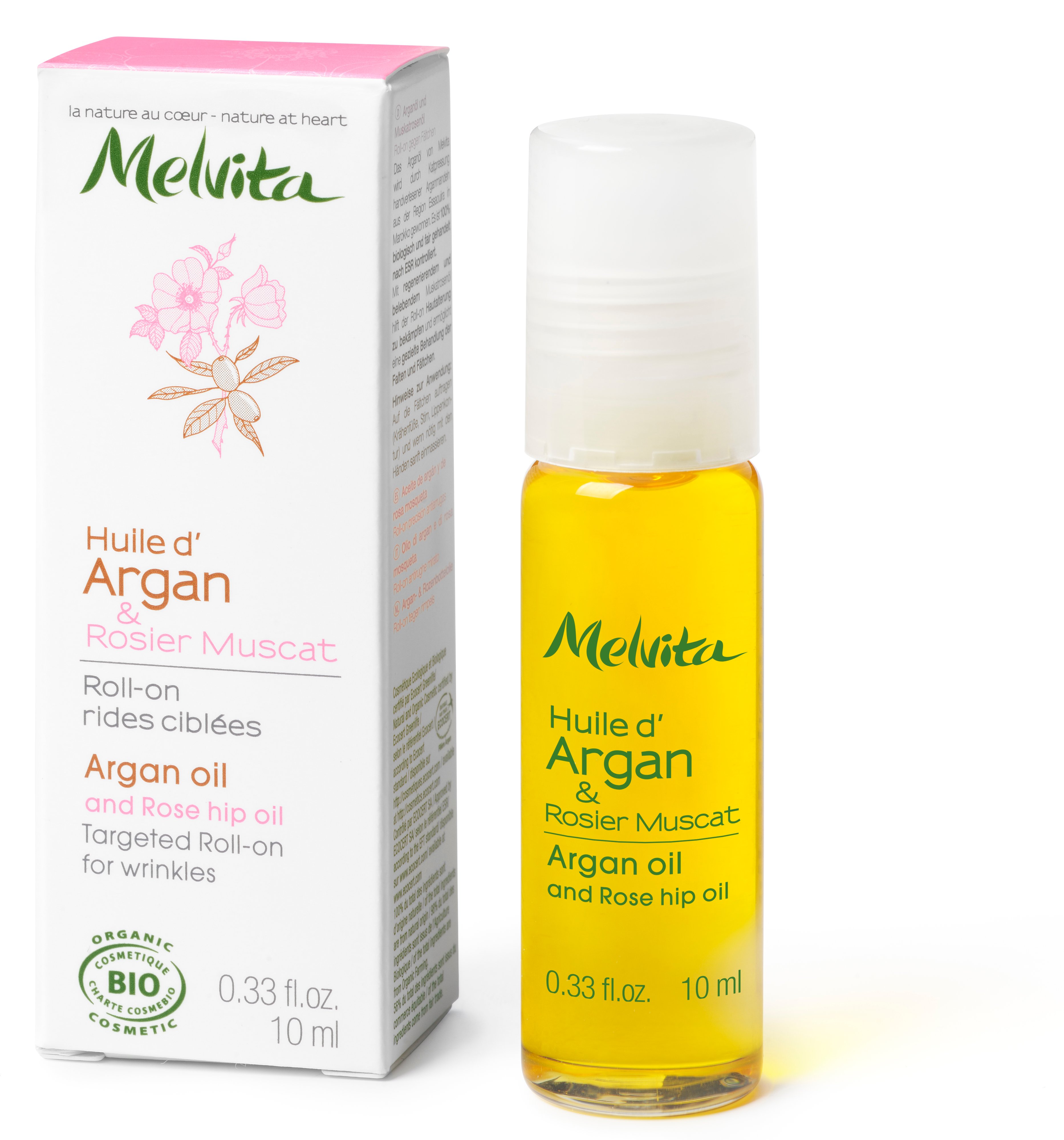 Melvita 蜜葳特選用經冷壓初榨取得的摩洛哥堅果油,結合玫瑰果油,可塗抹於眼角、前額與唇部周圍易有紋路生成的部位,可以指腹稍加按摩加強效果,小小一瓶非常萬用,滾珠的設計使用也很便利!