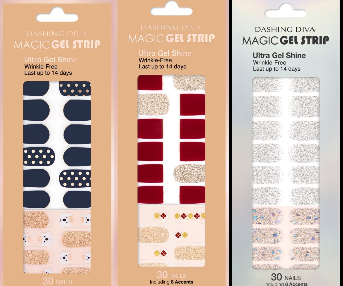 由屈臣氏獨家代理的韓國美甲品牌Dashing Diva,這系列的光療美甲片不須另用黏膠,易戴易拆,不傷指甲,這次聖誕節特別引進三款圖案,玻璃閃光/曜紅菱格/呆萌北極熊,款式都非常應景可愛,材質更薄更好貼,能保有兩周完美效果,派對不用花大錢做美甲,也能讓雙手有節慶感!