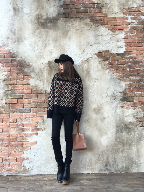 All Black的穿搭顯瘦又有個性,而加入幾何圖樣也讓整體造型更多了些豐富性~
