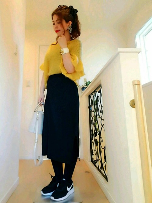 鉛筆裙的百搭真的是所有女生的好朋友!搭配紮入的方式穿搭,既顯瘦又能展現出好比例喔。