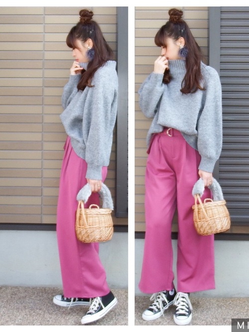 灰色一定要跟黑白、大地色搭配才合理嗎?亮色系的粉色加上讓灰色更加有活力!(搭上半髮髻的髮型以超可愛的~)