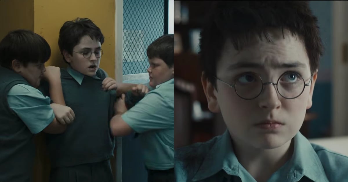 預告中讓我們重返《哈利波特》的故事起點…首集《哈利波特:神秘的魔法石》,當時尚未發覺自己巫師能力的小哈利,還寄宿在德思禮一家,畫面帶到由多明尼克麥克勞倫(Dominic McLaughlin)飾演的新版哈利波特,他睡在狹小、骯髒的樓梯下儲物間,被欺負、霸凌的場面似乎比電影版更加寫實,而痛恨巫師的佩妮阿姨一刀剪下小哈利的頭髮,說著:「你沒有什麼特別的。」