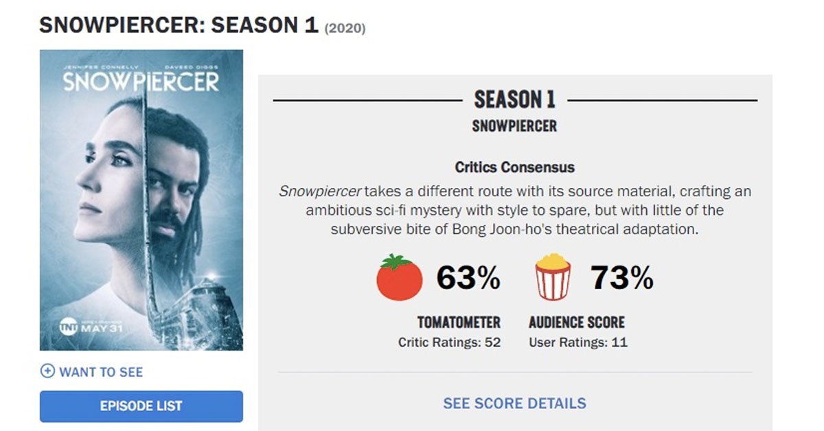 《末日列車》(Snowpiercer)美劇版歷經五年開發,日前終於在美國 TNT 頻道首播。有著電影原版的名氣加持,首播當日在收視上就獲得好表現,成為到今年目前為止,美國有線台娛樂節目收視率最高的影集。