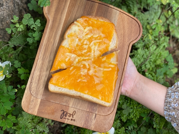 「起司奶油開放式三明治」在微酥微軟的吐司上,大氣地灑下「切達乳酪」和「天然奶油」,濃郁的芝士香氣撲鼻而來,切開的時候還會有起司大~牽~絲~搭配一旁的沙拉不但解膩更清爽!