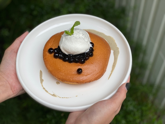 「鐵觀音珍奶瓦帕鬆餅」人氣珍奶和鬆軟瓦帕鬆餅完全就是不敗組合,使用鐵觀音奶霜和茶葉,搭配現煮珍珠粉圓和法國天然奶油,內還藏有麻糬和馬斯卡彭起司熱餡料,一口甜蜜直接入口!