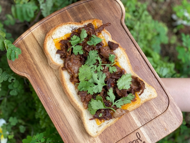 妞編輯私推「經典牛脾氣開放式三明治」,嚴選半筋肉,慢火燉煮將近八個小時,再加入微兜主廚私藏「花椒香醬」,一口下去除了能夠吃到牛肉的軟嫩之外,花椒的香氣更是神來一筆,讓人吃到欲罷不能!