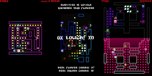看到這個畫面,手機小姐就想起了小時候玩的小精靈遊戲,這款遊戲同樣也是迷宮+怪物的組合,玩家需要在不斷變化的走廊中避開所有的怪物或射擊,採取所有的花朵,才會出現下一關的關卡大門!