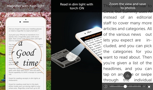 想必有許多人的爸爸媽媽愛看報紙,常常因為老花眼而對密密麻麻的小字感到很吃力,卻又找不到放大鏡,這時候只要打開手機中的App對準報紙,不但可以放大字體,還有照明的功能喔!
