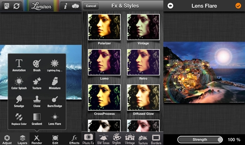 這款App也是超專業的修圖軟體,不但可以添加文字,還有各種PS中常見的筆刷最特別的地方是內建了許多跟「光源」有關的特效,像是鏡頭光暈、色彩飛濺等超過60種的濾鏡,讓你想換什麼風格就換什麼!