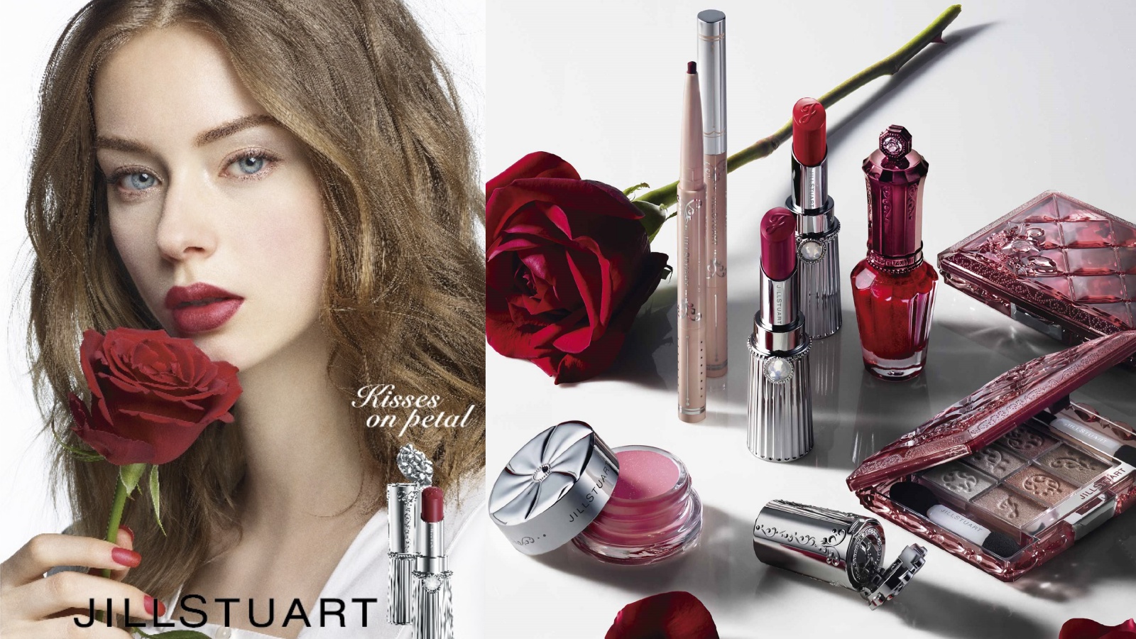 本季的秋妝系列從包裝到妝容靈感都取自於JILL STUART NY Fall Collection元素,黑色蕾絲和花朵裝飾的高領洋裝、金屬線編織的大衣、碎花絲質洋裝等等,彷彿重返舊世界般浪漫的風格,以倫敦女性為印象的彩妝風格底妝呈現裸妝感,以打亮效果強調光澤和立體感。眼影使用繽紛糖磚眼彩盤(絲絨花瓣)和漾透寶石眼彩凍,使用易與肌膚融合的金色及珊瑚棕色大膽的於眼尾大範圍堆疊,展演具有深邃感印象的雙眸。為了搭配具有強烈存在感的眼妝,唇部使用霧面唇妝,營造有女人味的自然質感。