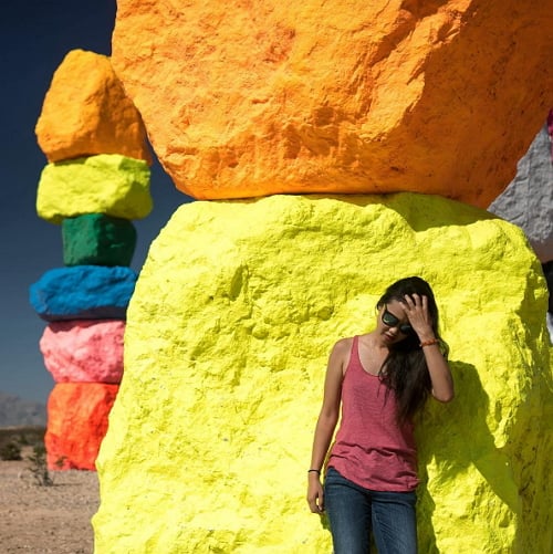 「七彩魔法」山不但讓我們主動投入大自然的懷抱,同時也代表著人類與自然的結合和延伸。相信這樣可愛的七彩大石頭,妞妞們一定很想和它來張合照吧?幸好展覽會一直持續到2018年,在我們衝去拉斯維加斯之前,不妨先來參考一下大家拍的美照,快去IG搜尋#7MagicMountains吧!