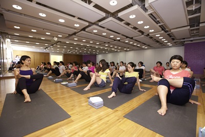 學員們跟著Pure Yoga 小Mei老師伸展筋骨