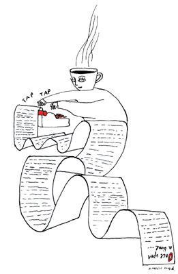 跟客戶配合的案子,將咖啡相關的一切都擬人化之後,不變的依舊是她喜愛的畫風。