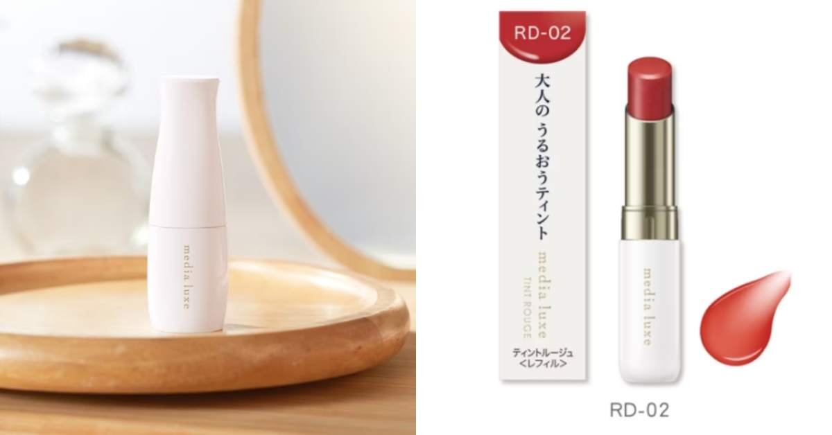 主打帶透明感的「紅色系澄透唇膏」,擠進年度排行第五名的媚點潤透渲彩唇膏,能夠修飾唇色暗沉,就算不用護唇膏打底,也能維持潤澤感,最熱賣的#RD-02 暖陽橙,非常適合亞洲偏黃膚色。