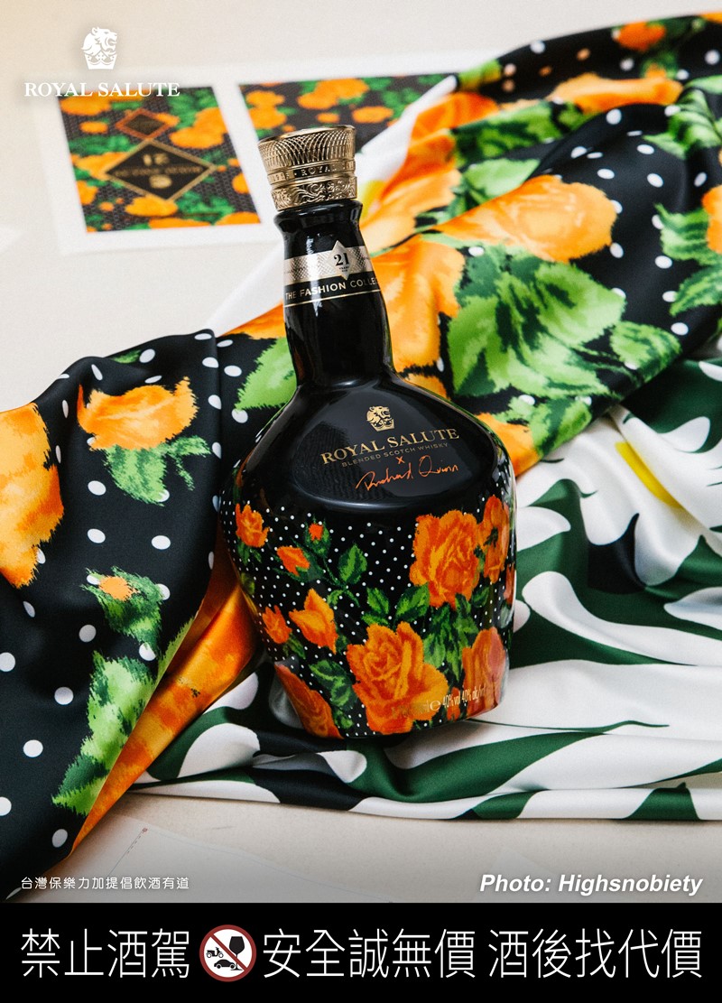 在令人目眩神迷的設計之外,瓶中盛裝的酒液更盛放出舌尖上的繁花似錦。原來,「皇家禮炮21年新奢時尚系列第二代」由Richard Quinn親自到皇家禮炮傳奇酒廠「史翠艾拉」(Strathisla),與皇家禮炮首席調酒師Sandy Hylop共同挑選出21年以上珍稀酒液;此外,Sandy Hylop更調和了已消逝不復再製的珍稀原酒,包括擁有「神秘之泉」美稱的「凱普多尼克」(Caperdonich),以及位在河谷高地、名列蘇格蘭最高酒廠的「布萊弗」(Braeval)。「我到蘇格蘭參觀皇家禮炮酒廠,看見許多不同的、數十年的酒藏,並感受到其背後的歷史,發現這也正是我透過自己的品牌在做的事情——打造屬於未來的傳承。我們每一件設計都以訂製精神打造獨特性,與其追求大量生產,我們更願意聚焦於製衣工藝,這樣的工藝才能在歷史中樹立成經典的傳承品牌(Heritage Brand)。」Richard Quinn說道!