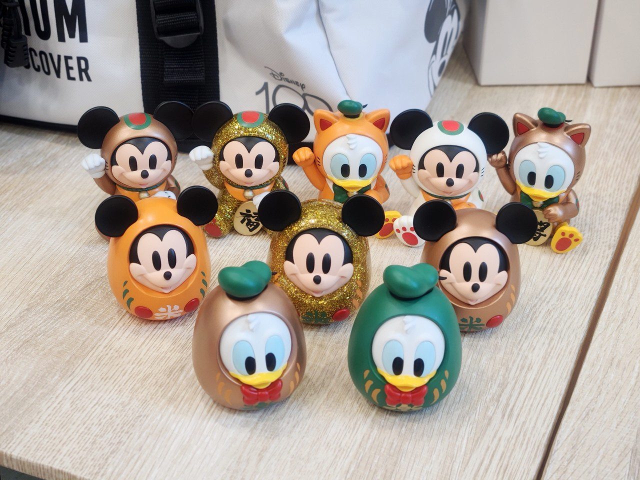 以達摩及招財貓跟米奇與唐老鴨為靈感,結合「米」、「樂」、「福」、「得」幸運字推出10款幸運公仔,更有隱藏版的粉金招財貓米奇以及粉金達摩米奇,通通隨機出貨,妞妞們可以來試試手氣!想要一次收集全套也能直接購買「福部屋幸運公仔套組」喔。