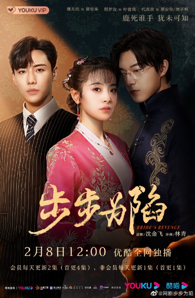 魏天浩、屈夢汝、代高政領銜主演的陸劇《步步為陷》,作為《千金丫鬟》姐妹作,講述葉家大房嫡女「葉青卿」和葉家二房獨女「葉青嵐」一同嫁入慕家,葉青卿和慕家大少爺「慕安承」結婚,葉青嵐則淪為慕家二少爺「慕安和」沖喜新娘,但其實葉青嵐和慕安承才是真心相愛,大喜之日,四人關係成謎,一夜之間戀人竟然變弟媳,殊不知這一切都是慕安承的計謀!