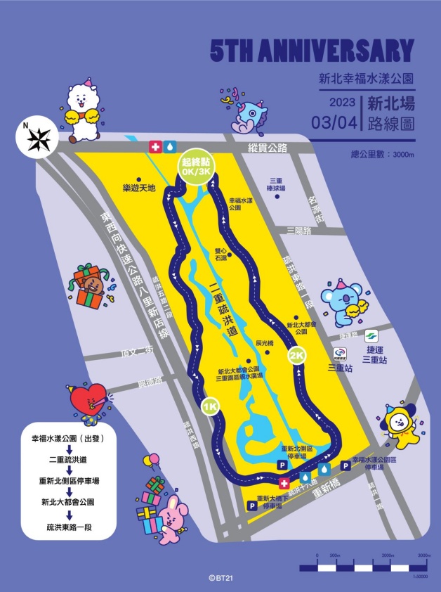 新北場路線圖時間202334日,地點位在「新北幸福水漾公園」,行經路線:幸福水漾公園二重疏洪道重新北側區停車場新北大都會公園疏洪東路一段!
