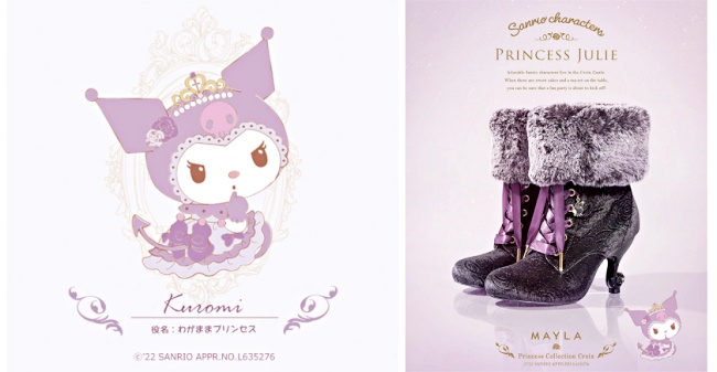 約會?聚會?派對?這一雙存在感夠高了吧(笑)?MAYLA Princess Collection Croix Princess Julie × Sanrio characters聯名系列一共推出5雙高跟靴款,分別以Hello Kitty、美樂蒂、酷洛米、大耳狗以及布丁狗為主題設計,搭配角色的招牌色系打造,像是整雙粉粉嫩嫩的美樂蒂靴、清新天空藍的大耳狗靴,酷洛米款式則是用「紫色鞋帶+黑子鞋身」,是惡魔的御用鞋沒有錯啦~