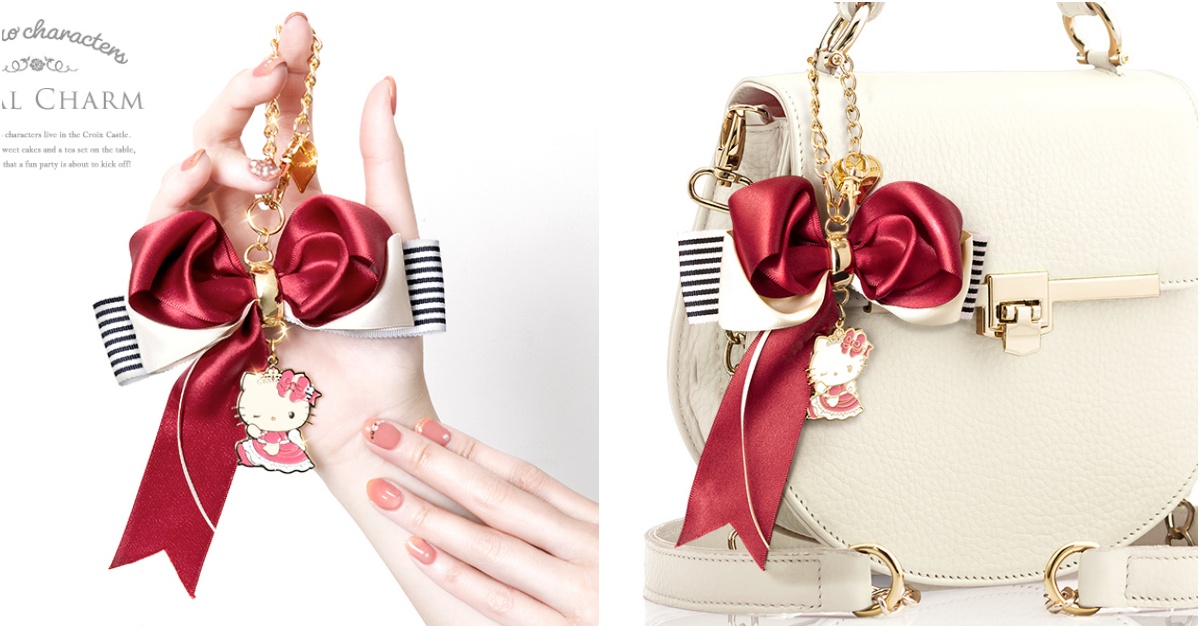 不只能穿,Hello Kitty、美樂蒂 、酷洛米、大耳狗、布丁狗、雙星仙子、帕恰狗7大角色這次變身「閃亮亮吊飾」,結合加入角色代表色的雙色緞帶蝴蝶結、金屬材質,掛包包等配件上,整體氛圍馬上奢華起來,以上商品已經在日本官網販售囉!