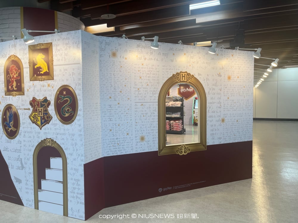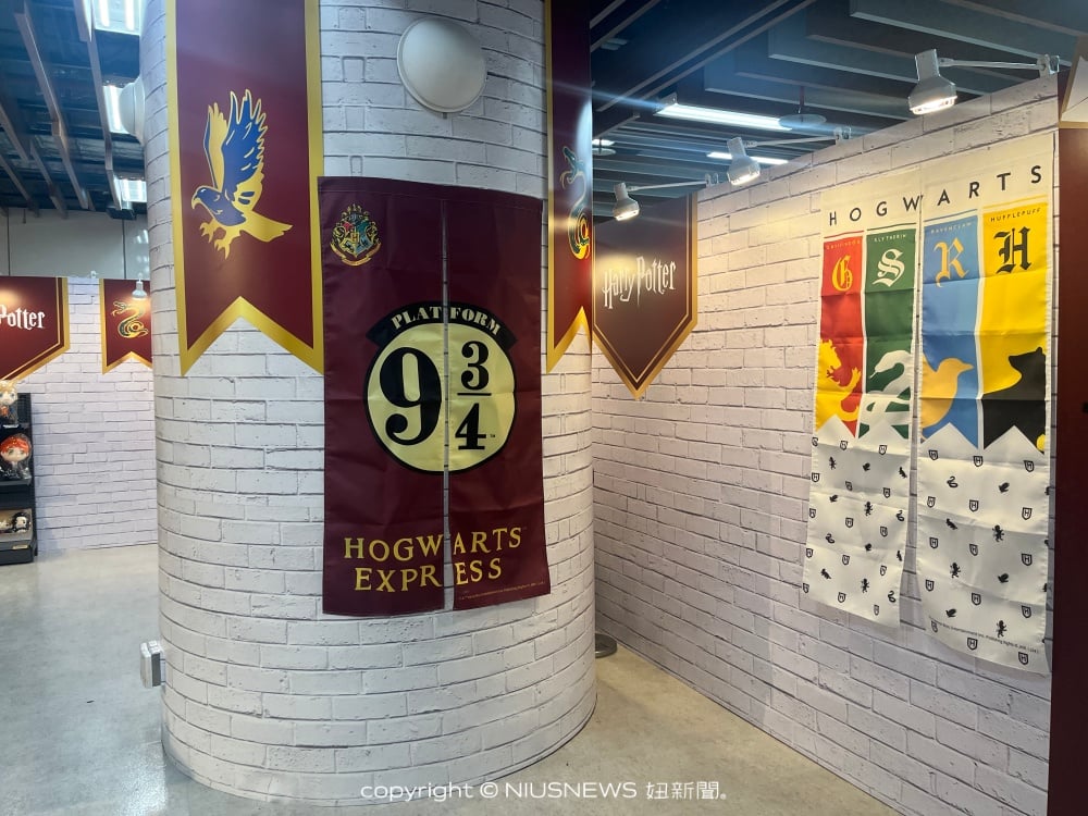 來到台北東區地下街第二廣場,從快閃店的不遠處就能撇見印滿著「霍格華茲經典元素」的外牆,集合霍格華茲、金探子,以及九又四分之三月台等。同時也象徵大家距離抵達快閃店,就差這幾步啦!
