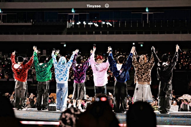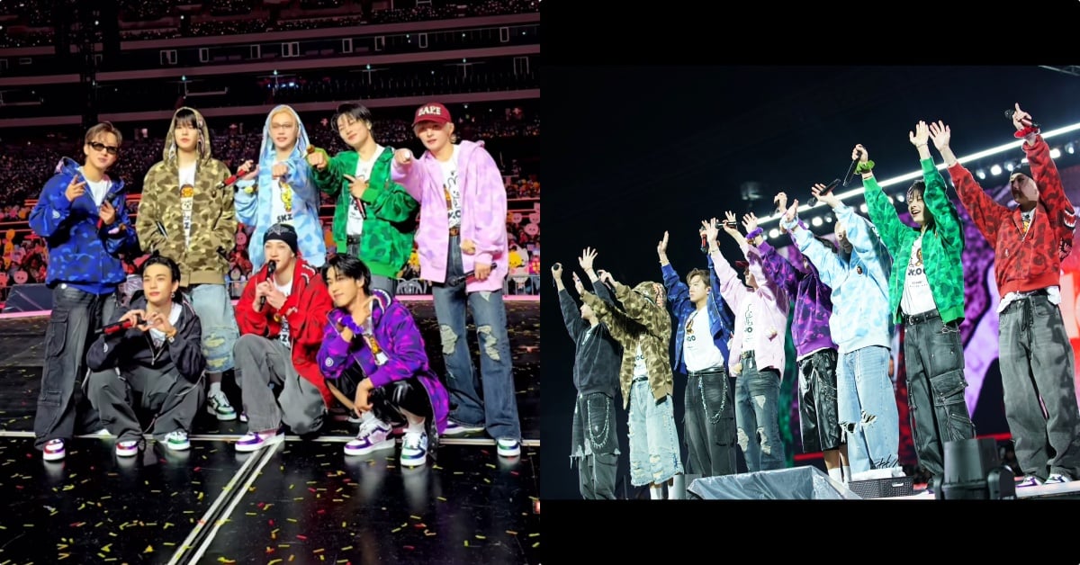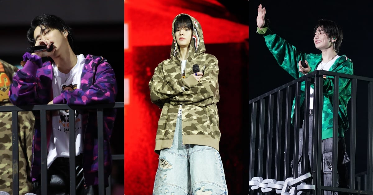 日本品牌「BAPE®」居然與Stray Kids跨界聯動,在10月中,Stray Kids官方社群就搶先公開一張成員官方角色SKZOO的大合照,其中亂入了一隻「小猴子BABY MILO」,驚喜預告雙方的合作!結合8隻成員代表的SKZOO角色,推出極具收藏價值的聯名服飾、配件系列,果然吸引全球粉絲爭相搶購,成員們也在安可場上親自穿上舞台,現在台灣也可以買到啦~