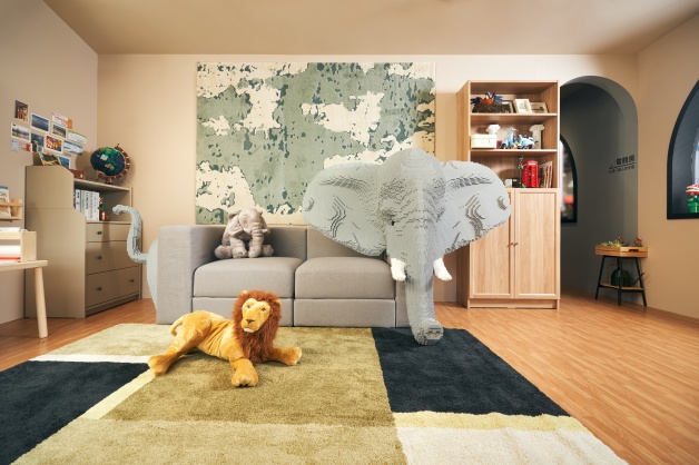 力邀樂高專業認證大師「黃彥智」獨家設計三樣作品,分別為大象沙發「動物大遷徙」、電動升降桌「漫遊星際」、吊燈「空中花園」,三樣創作對應展間主題,完美融入居家擺飾之中!