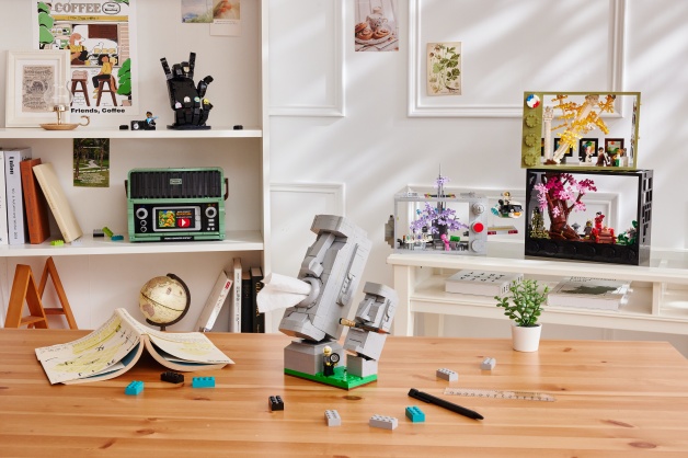 展間還有樂高達人戚心偉、侯彥仰、詹政峰為這次活動創作一系列專屬於「樂高風」,像是貓頭鷹造型小夜燈、手掌造型手機架、健身猴子島鑰匙掛鉤、樂高盆景、復古收音機造型音響、兔子和松鼠造型的書擋等,以及一大一小的「摩艾頭書桌擺件」,嘴巴可以抽出面紙、可以當筆架,妞妞們都可以在現場找找看喔!