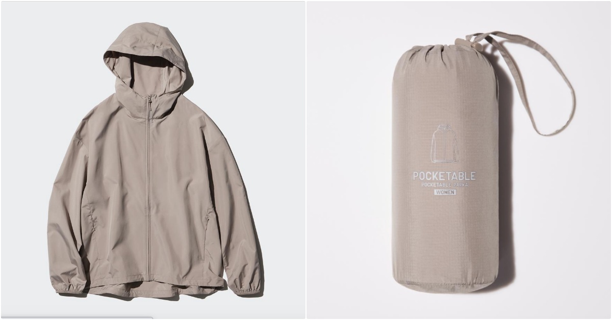 有帽子就加分!UNIQLO這款連帽外套採用防潑水加工製成,同時還加碼高達防曬係數UPF50+的「抗UV」機能,不管是臨時降小雨或是炙熱艷陽,都能「穿」起最優秀的防護罩,還能小巧的收進附贈的收納袋,隨身攜帶趴趴走,一共推出基本的白、黑、灰以及奶茶棕、莓果粉、霧灰藍6大配色,想百搭、想亮眼都可以。(綁在腰間超時髦的~)