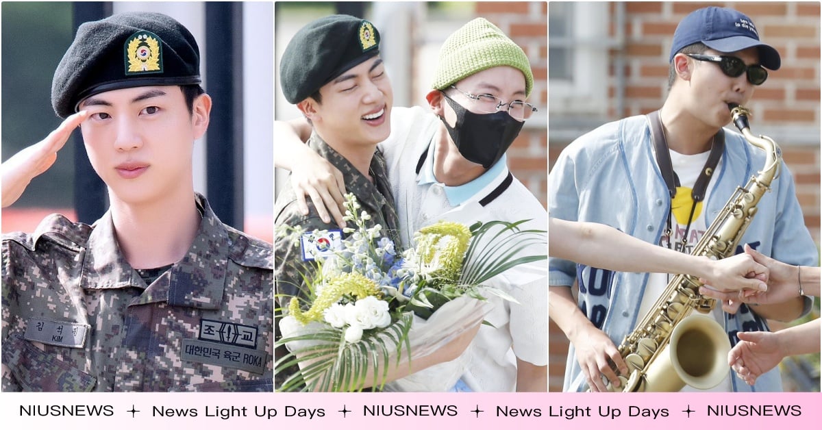 防彈少年團Jin「首位成員退伍即時畫面」!全員請假合體、RM吹薩克斯風這幕超感人