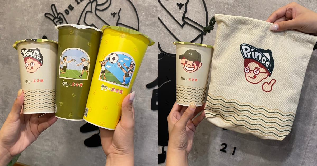 有飲攜手懷舊點心「王子麵」,於即日起推出聯名紙杯、周邊商品,三款紙杯包括運動風主題,趣味結合雙品牌角色;必收周邊「帆布束口袋」,正反兩面皆可用,只要加價199元就能獲得!