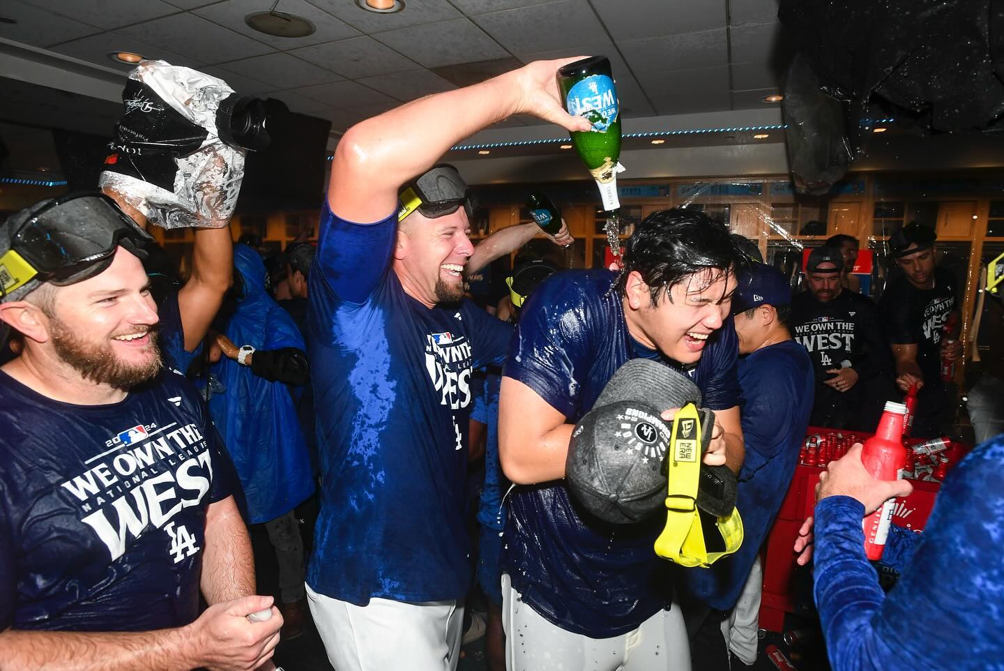 比賽結束後,全隊一起換上了紀念T恤,而初嚐香檳浴的大谷翔平,表示一直都很想參與這樣的慶祝,終於能在今天實現,讓他感到幸福。他還笑說「香檳讓我的眼睛有點刺痛!」