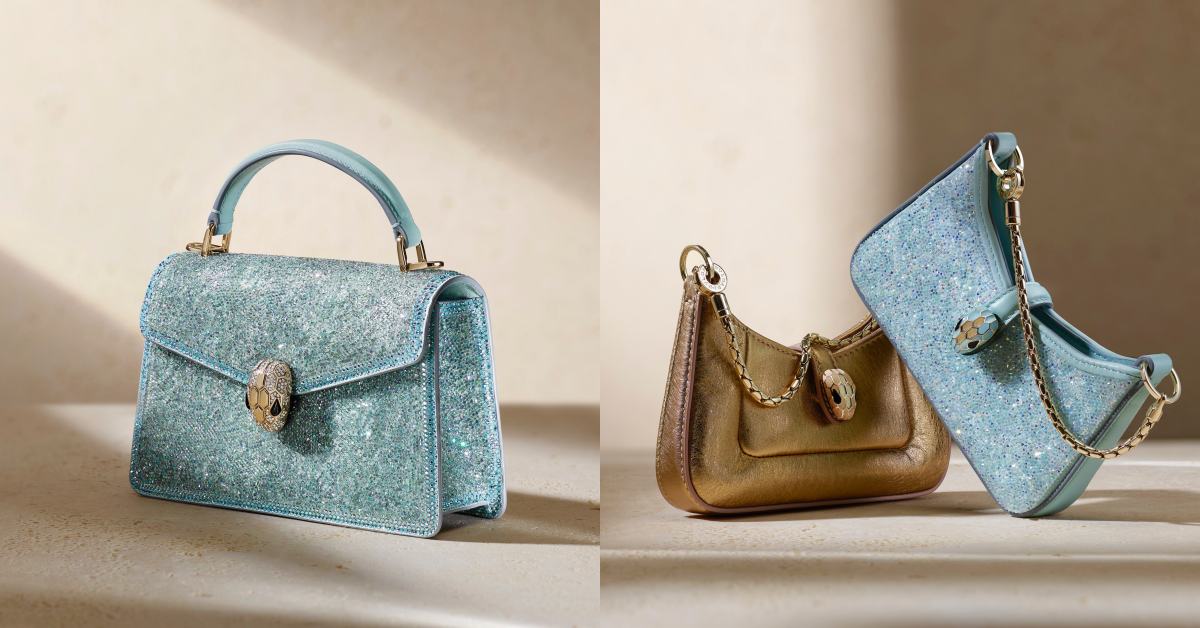 寶格麗的精湛的工藝相信不用妞編輯多做介紹,在探索創意工藝的路上,寶格麗善用自身的珠寶底蘊,呈現出光線映照下的利用排列與折射,將單一色調產生無盡璀璨光芒!今年春夏推出全新「ROMAN LIGHTS羅馬光輝」系列,「Serpenti Forever水晶閃耀海水藍寶色小牛皮迷你手提肩背包」鑲嵌尺寸不一的耀眼水晶,搭配海水藍寶色Nappa小羊皮內襯將裡外細節都兼顧,淡金色黃銅蛇頭扣環飾以密鑲淺藍色方晶鋯石是寶格麗的奢華象徵,除了可以當作配件,更是一件無法忽視的飾品!
