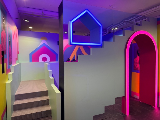 入口處寫著「Cash Prize」現金遊戲,等著妞妞們入場,一眼望去拱門和壁面即可見「魷魚遊戲」主要負責人戴著面具的「黑衣人」引導大家入場,超有身歷其境感!