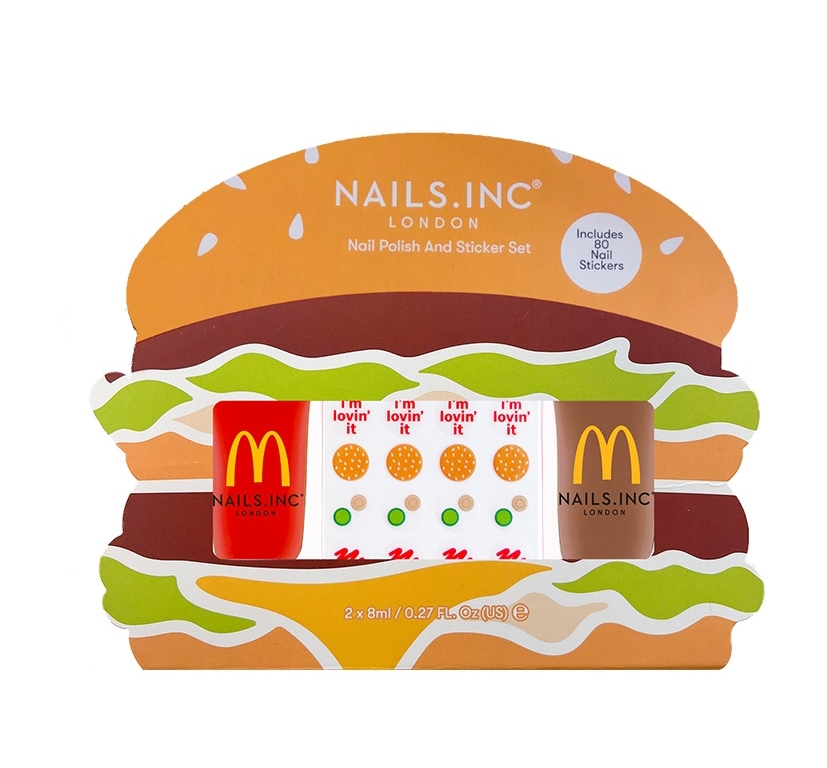 你的餐點好囉!疑,打開盒子熟悉的大麥克、薯條怎麼變成指甲油了?人氣指甲油品牌Nails Inc宣布和麥當勞官方合作,以麥當勞熱賣的餐點大麥克、薯條為靈感,打造可擦不可食的指甲油,不僅配色對應餐點,還附贈超可愛的迷你貼紙,可以隨自己喜好裝飾在指尖上。